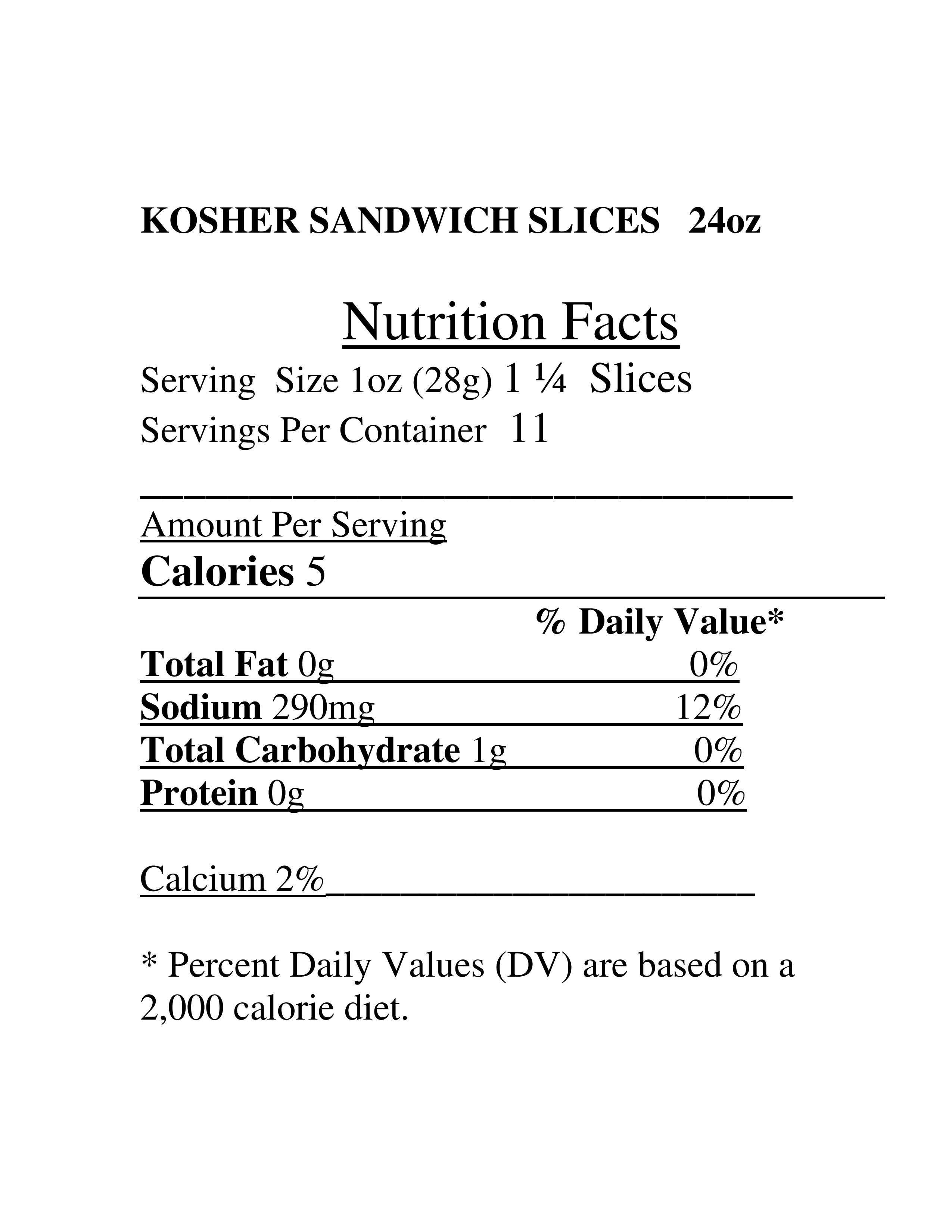 Refrigerated Kosher Sandwich Slices – Product order code # 9