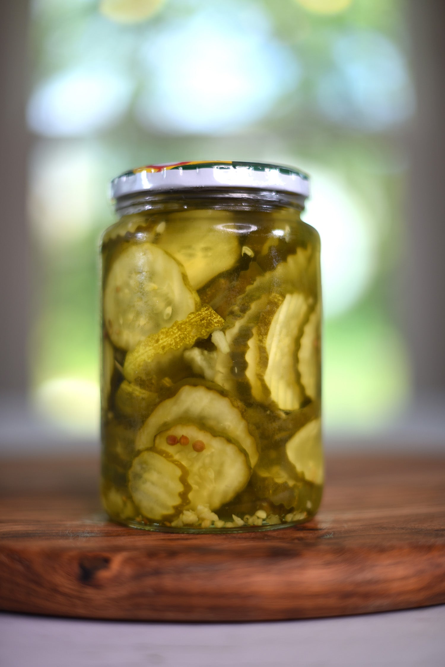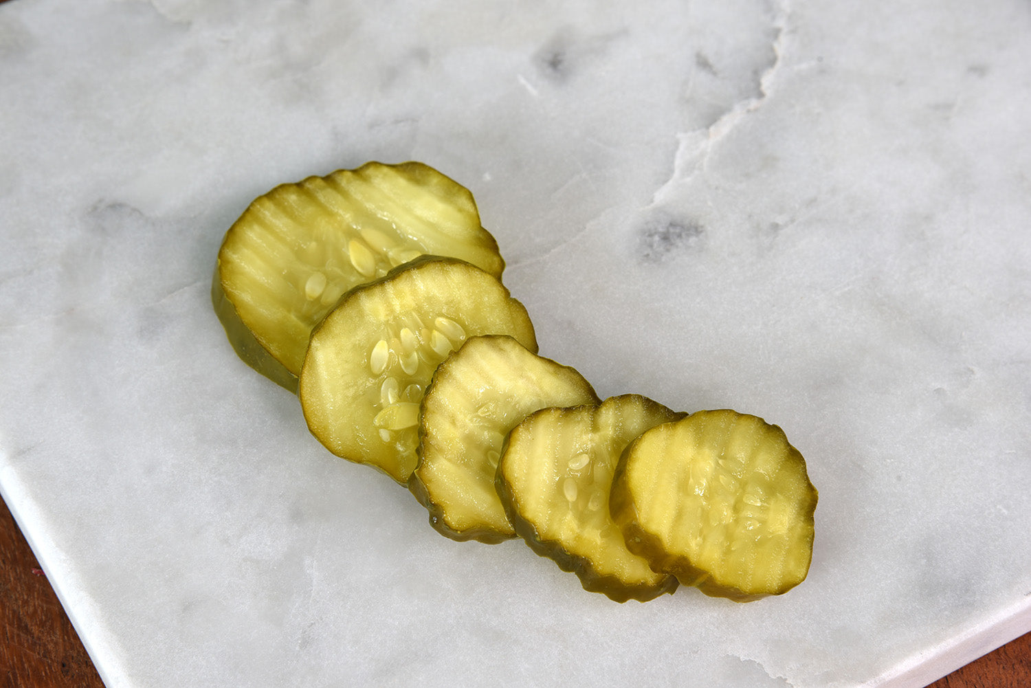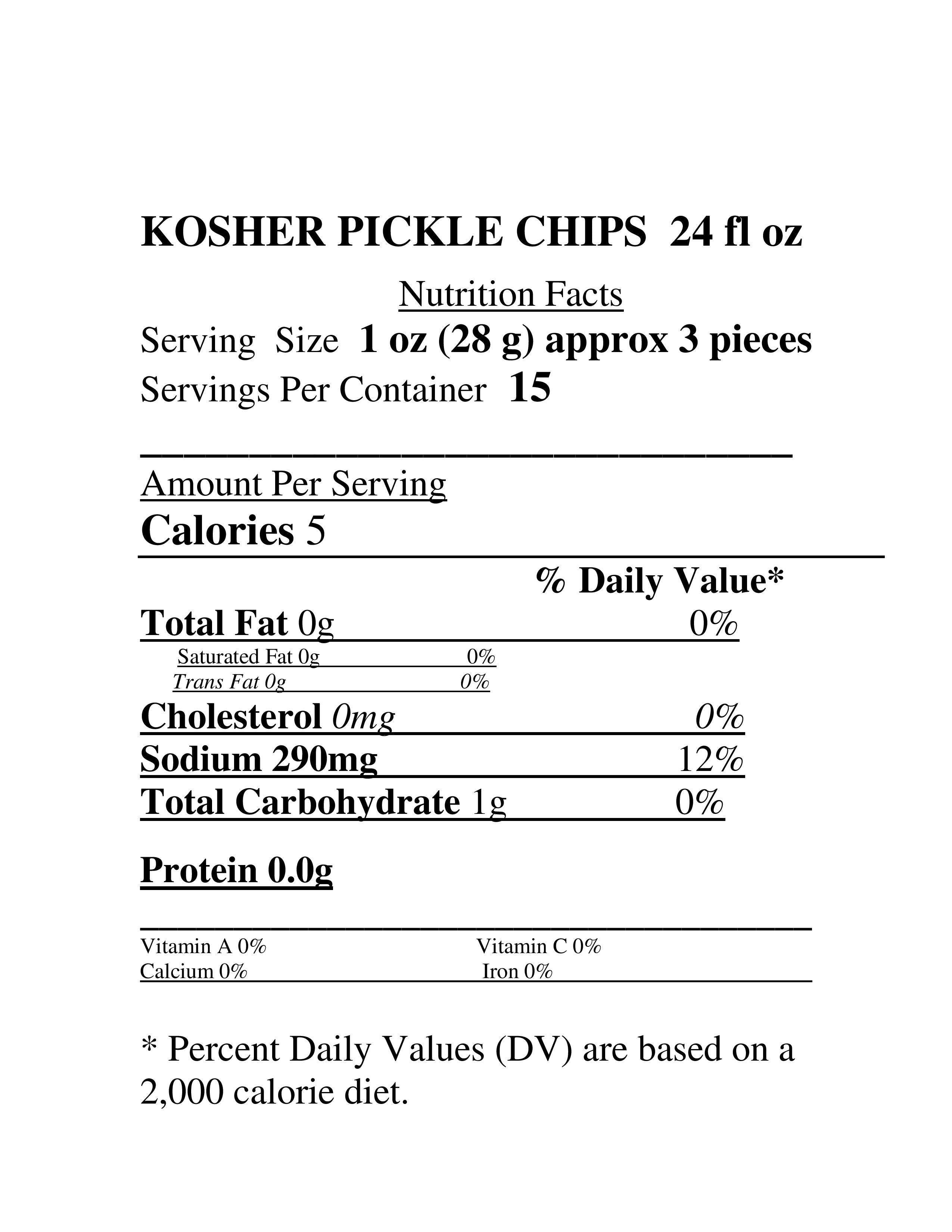 “Refrigerated” pickles, cut into Chips, prepared from fresh stock in a vinegar solution with,