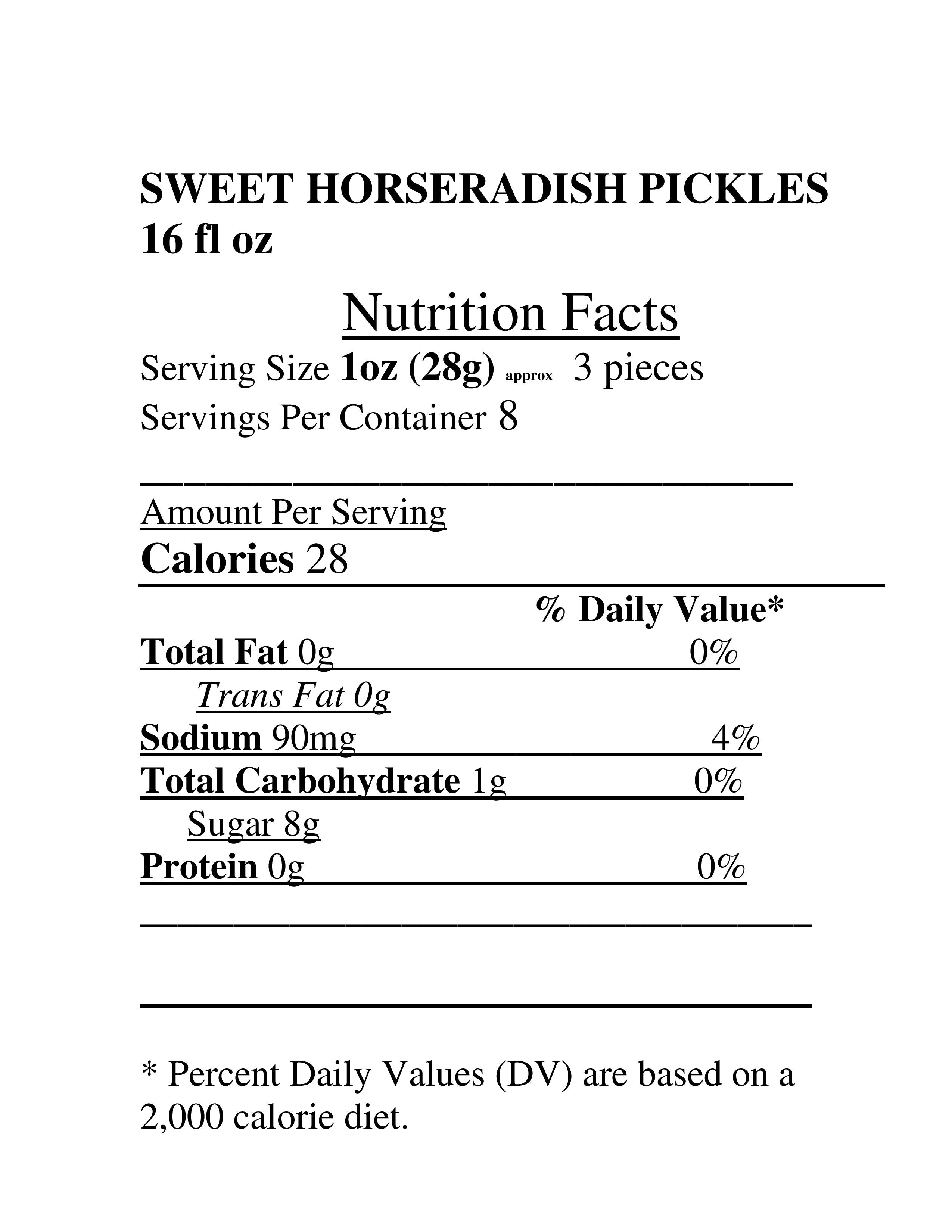 Refrigerated Gourmet Sweet Horseradish Pickles – Product order code # 17